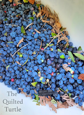 After three years of virtually no blueberries, Mother Nature made up for it this summer. We discovered a new picking spot that was just loaded with berries. There were so, so, so many berries! Three of us picked for about two and a half hours and brought home 28 pounds (12.7 kg) of blueberries. (That was the weight after cleaning.) I'm not going to have time this week to make jam, so they all got frozen. We debated going back again to pick more, but our freezer is packed full!