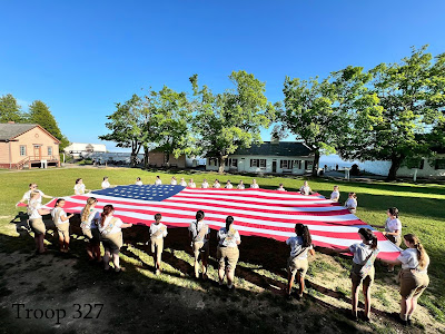 It's a big flag - 38 feet by 20 feet (11.5 meters by 6 meters) - that's only flown when the conditions are perfect. It's so big, it takes quite a few scouts to fold it. (When you see it with people for scale, you get the true feel for just how huge the Garrison Flag really is!) I'm not in the photo below, but I came to Mackinac with Troop 327 as part of the Mackinac Island Scout Service Camp, for five summers.